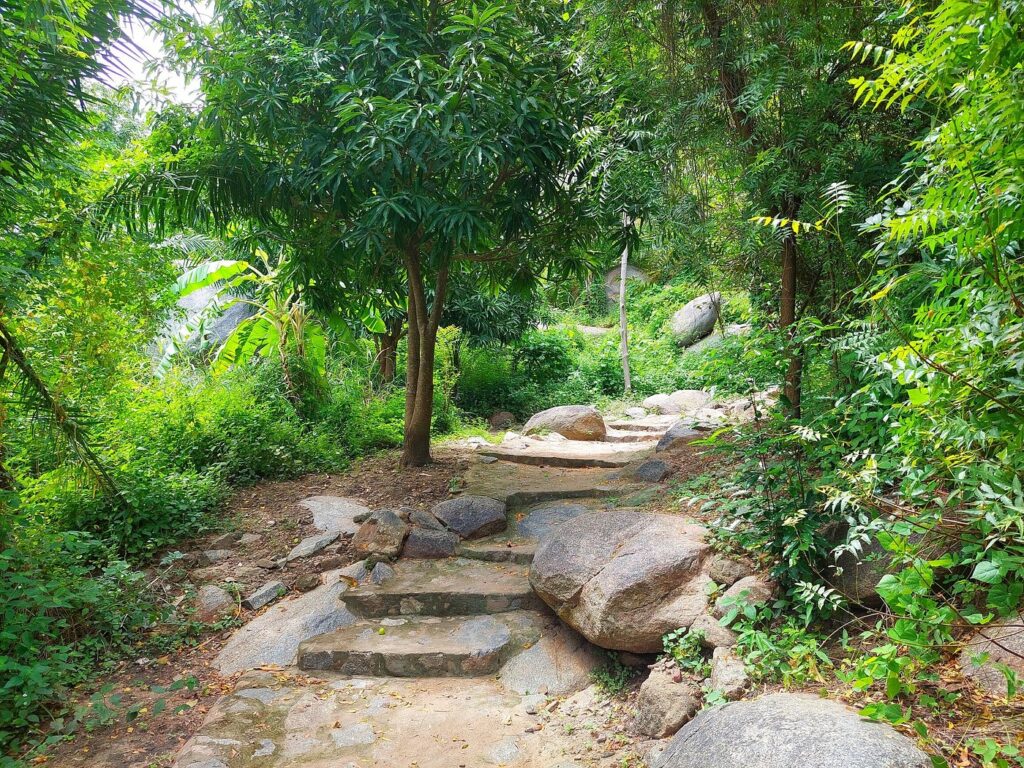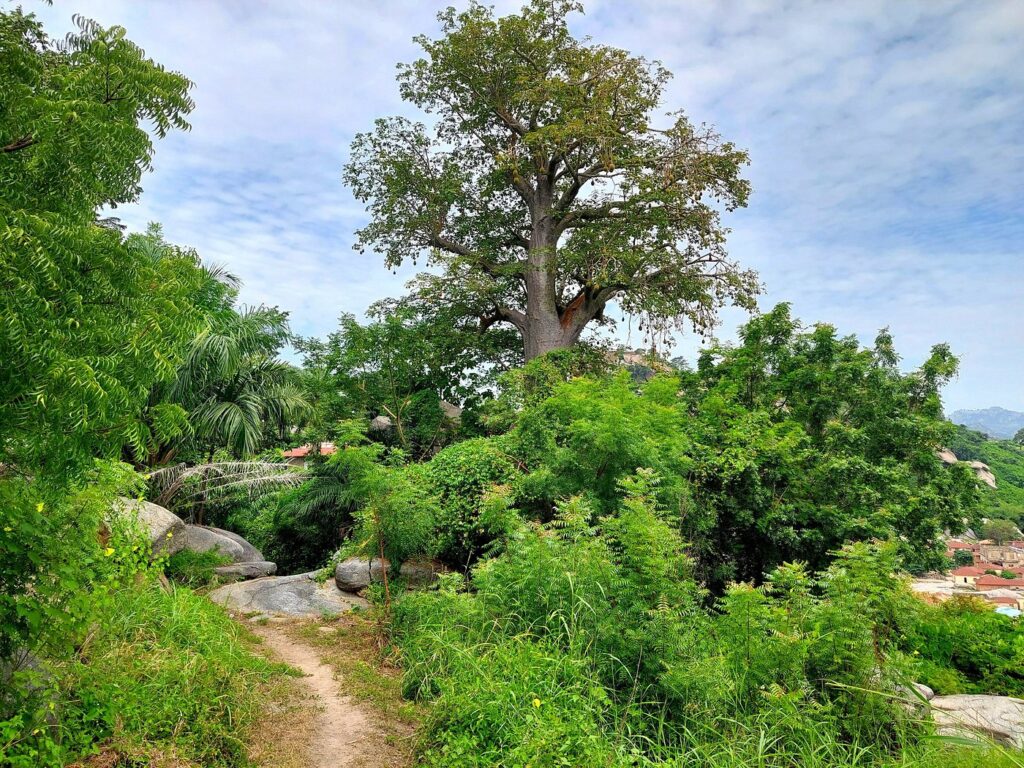 L’ascension d’Oke Yaka se fait de préférence tôt le matin, accompagné d’un guide. Sur le chemin, baobabs, palmiers, bois de santal et fleurs sauvages encadrent des rochers imposants. On y découvre une case fétiche ornée du serpent et de la jarre, symboles de la légende, ainsi que d’étranges empreintes creusées dans la roche au sommet.
